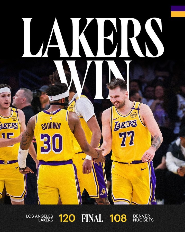 2025-03-20 21:35:05湖人官方晒出赢球海报:东契奇、里夫斯、古德温、海斯登上封面