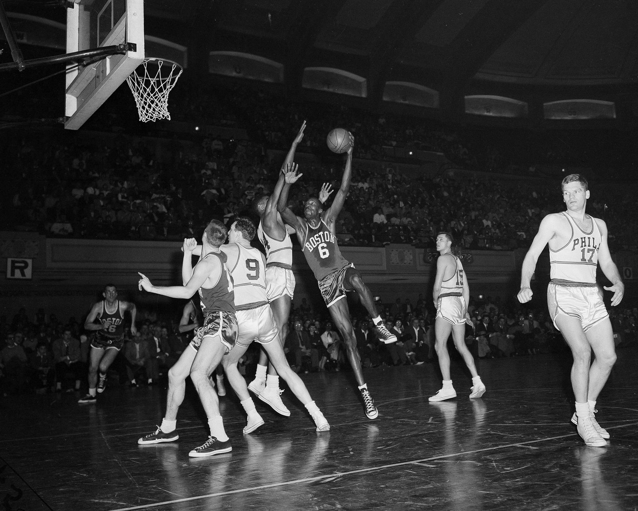 迪诺-拉迪亚、朱尼尔-布里奇曼、康尼尔-迪尔金、乔-肯尼迪、阿德里安-史密斯、比尔-拉塞尔(1965年对阵费城76人得到4分17篮板6助攻)、巴里-霍威尔、西伊-格林、杰克-乔治、埃德-里德、贝勒斯-斯莫利。